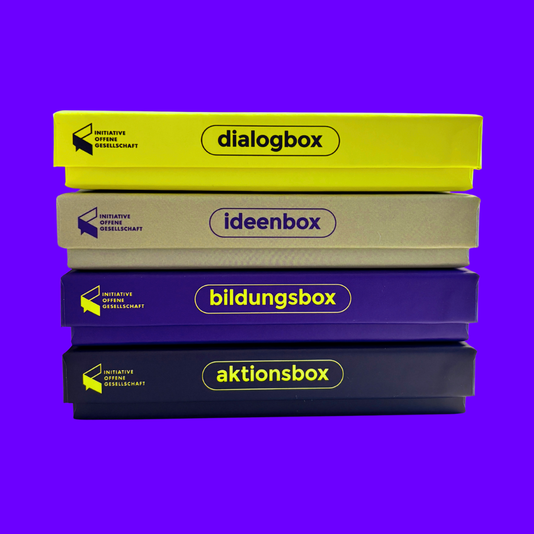 Mit dem Boxen-Bundle erhältst du alle vier Boxen in einem Paket – perfekt für Engagierte, Lehrende, Teams und alle, die Begegnung, Dialog und demokratisches Mitgestalten fördern wollen.